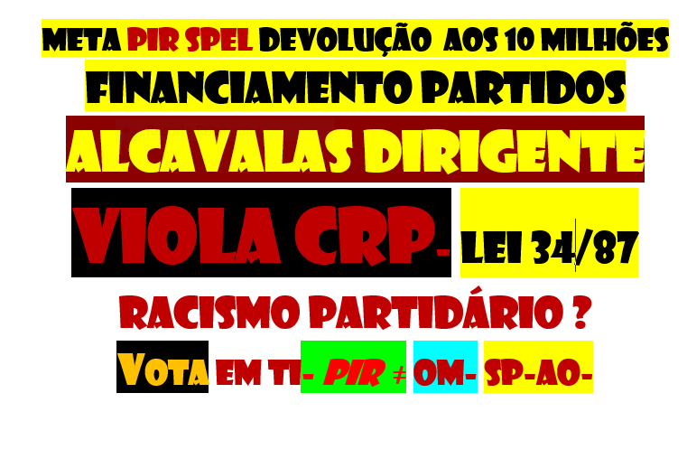PORTUGAL PIR PARTIDO INDEPENDENTE DO REFERENDO ÚNICO QUE SATISFAZ TODOS OS REQUISITOS DEMOCRÁTICOS E LEGAIS EXIGIDOS NA CRP A LEI DAS LEIS A QUE TODAS AS OUTRAS SE SUBMETEM SOB PENA DE VIOLAÇÃO QUE DÁ PRISÃO TRANSFORMA COMUNISTA FASCISTA NAZISTA DEMOCRACISTA GLOBALISTA