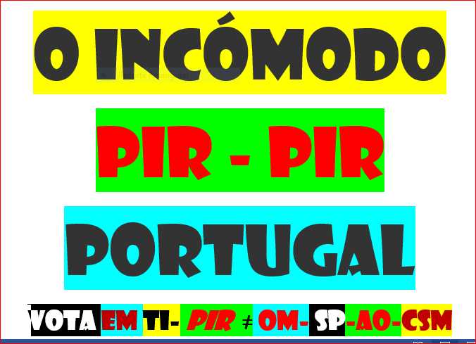 PORTUGAL PIR PARTIDO INDEPENDENTE DO REFERENDO ÚNICO QUE SATISFAZ TODOS OS REQUISITOS DEMOCRÁTICOS E LEGAIS EXIGIDOS NA CRP A LEI DAS LEIS A QUE TODAS AS OUTRAS SE SUBMETEM SOB PENA DE VIOLAÇÃO QUE DÁ PRISÃO TRANSFORMA COMUNISTA FASCISTA NAZISTA DEMOCRACISTA GLOBALISTA